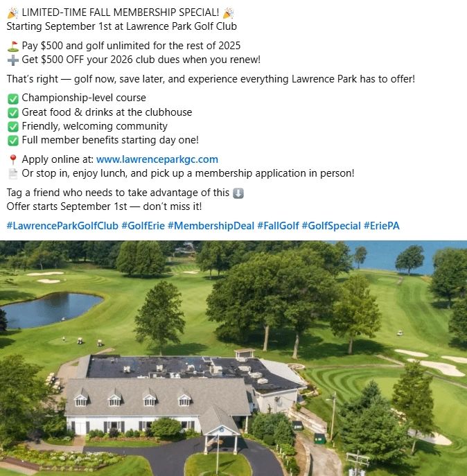 April 15-Oct 15: Can golf 5 times by paying greens fee